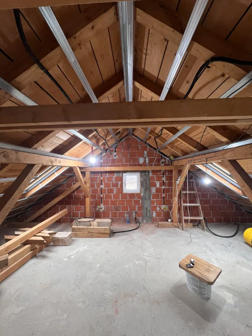 Pogledaj detalje – naši radovi na Izvlačenju (postavljanju) nove elektroinstalacije u potkrovlju – Barajevo 2025.